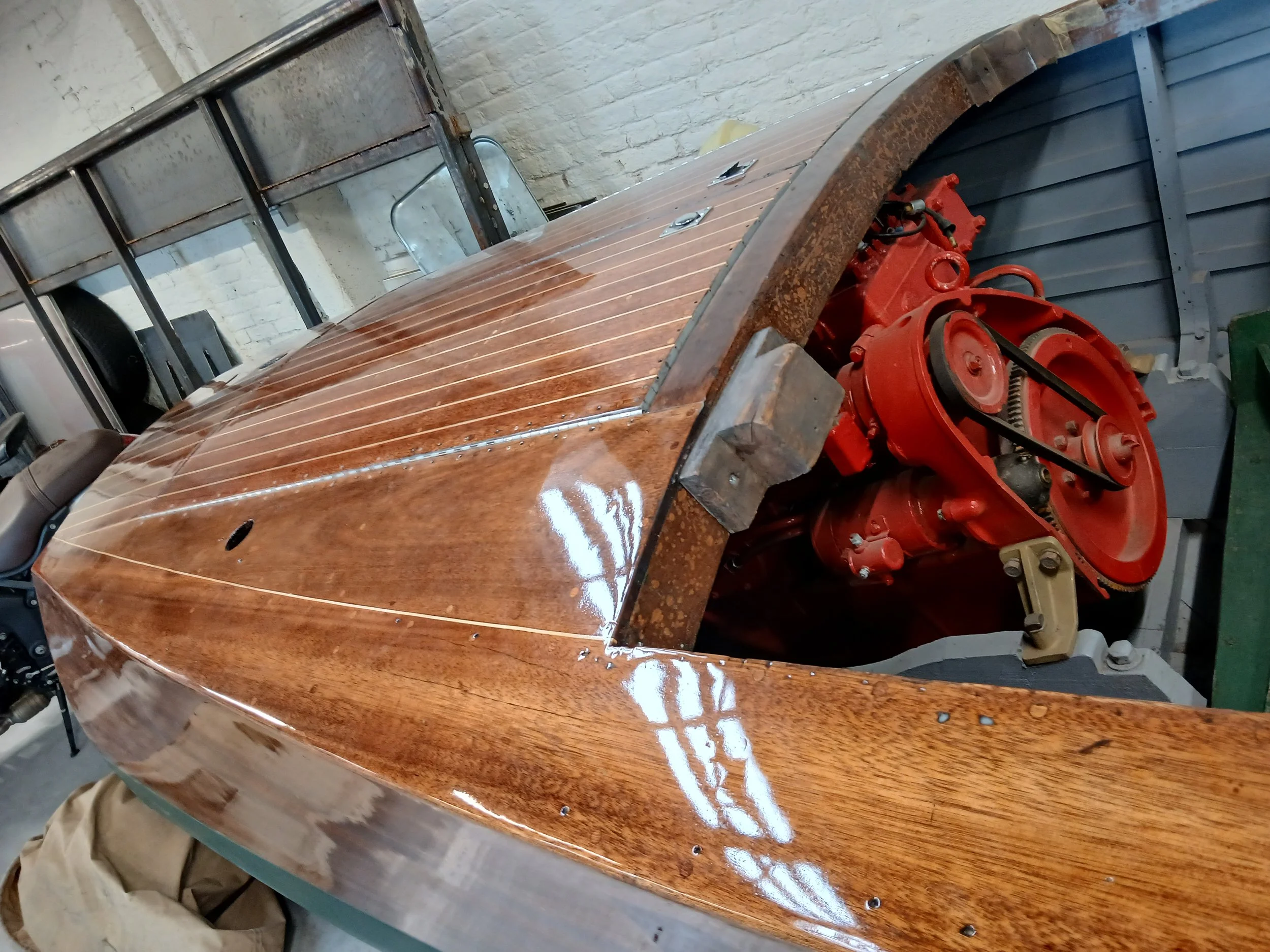 Renovation to be completed: bottoms redone and painted, sides and decks varnished. Gray Marine 6 cylinder 150hp engine in order and installed. Remaining saddlery, fittings and finishing (without trailer).